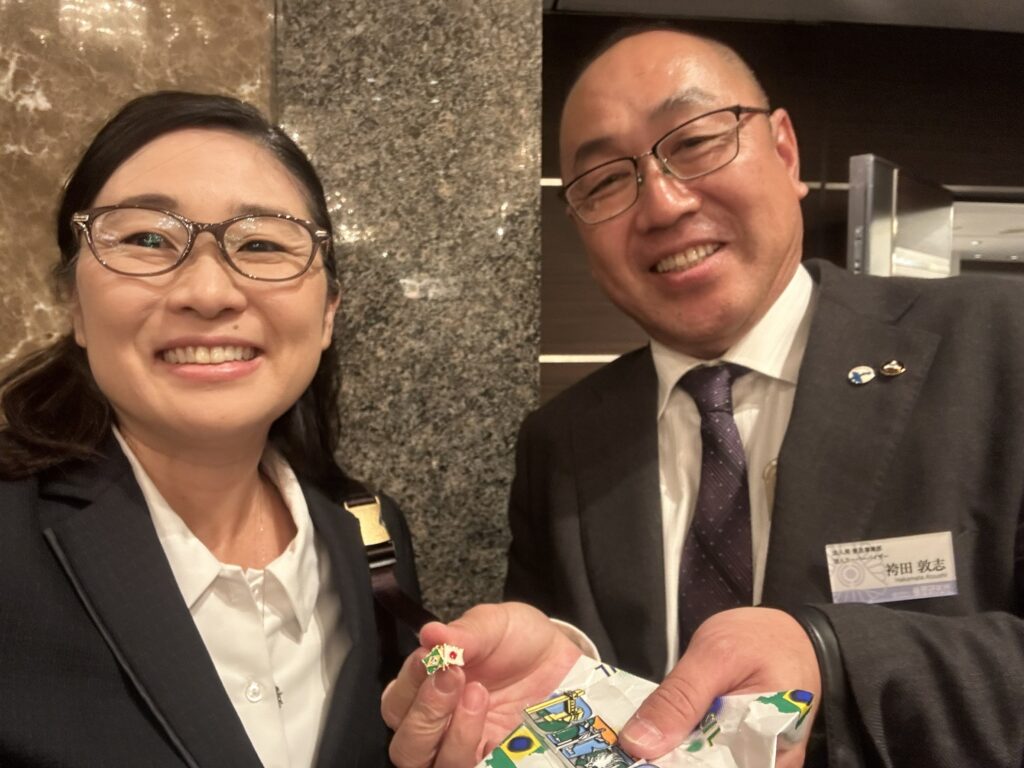 また、以前、ブラジルの倫理法人会を立ち上げられた須郷様とご一緒にペアを組み学んだことから、ご縁をいただいているのですが、須郷様のお嬢様が日本で学ばれており、日本とブラジルの国旗のバッジなどをプレゼントしていただきました。